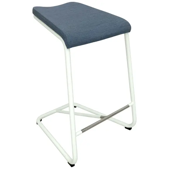 Barpallen Add från Lammhults ger den perfekta balansen mellan estetik och funktion. Sitsens naturliga lutning ger en idealisk arbetsposition, men uppmuntrar även användaren att ställa sig upp då och då. Aktiv sittplats möjliggör aktiva och kreativa möten. Klädd i ett mörkblått tyg på vitlackat underrede med fotstöd i krom.