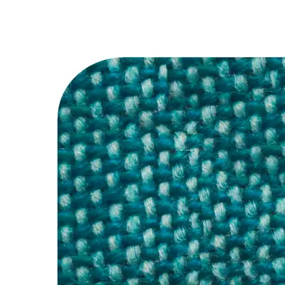 Stolen har ett tyg i turkos ton och ben i ek.