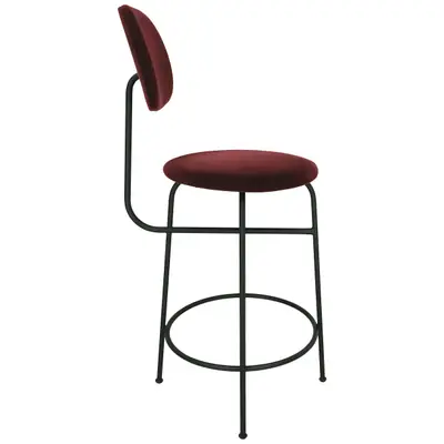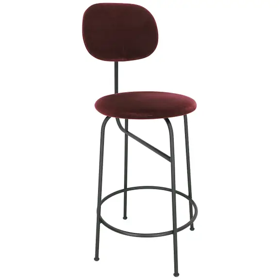 Den funktionella barstolen Afteroom Counter Chair Plus med sin minimalistiska, Bauhaus-inspirerade design. Stoppad och klädd i ett vinrött sammetstyg på underrede i svart pulverlack. Sitthöjd: 63,5cm.