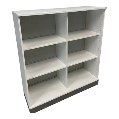 Vit förvaring/Bokhylla från kvalitetssäkra Kinnarps. Skåpet är vitt med grå sockel.