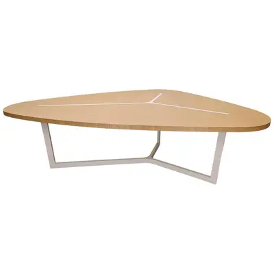Seven från B&B Italia är ett gediget matbord i vacker design av Jean-Marie Massaud (2008). Bordsskivan är i ljus ekfanér och underredet i vit, mattlackad metall. Bordet är gjort för 7 sittplatser i konfigurationen 3+2+2.