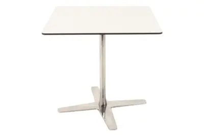 Ett komplett bord med vit skiva och kromat stativ ifrån Offecct.