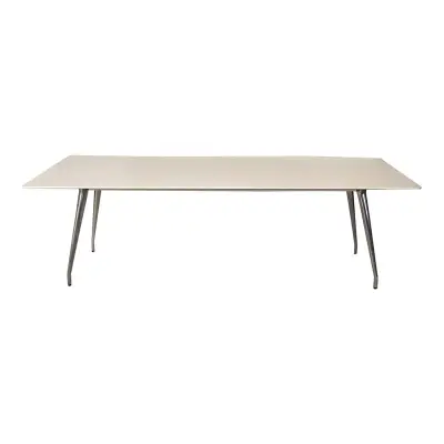Bord med skiva i vitlaminat. Ben i polerad aluminium.