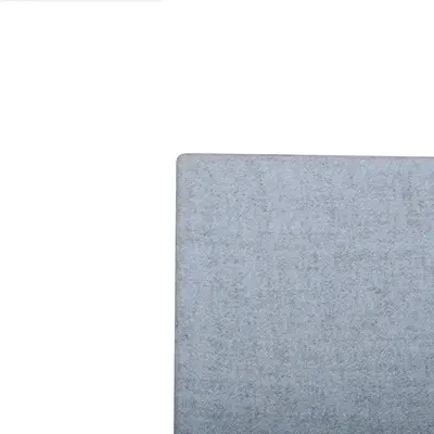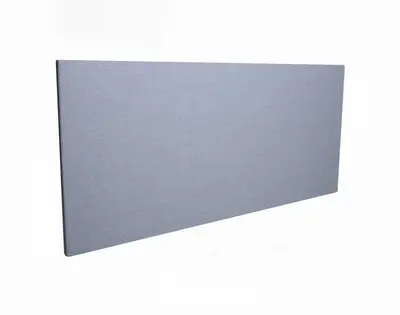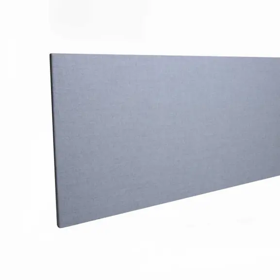 En snygg och ljudabsorberande bordsskärm, helklädd i ett ljusblått tyg. Fästen för frontmontering ingår.