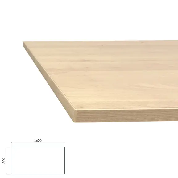 Björkskiva, lätt att matcha med möbler i ljus lönn och bok. Gjord för skrivbords ändamål med robust och lättstädad laminat. Kompletteras med ben, stativ eller elstativ.