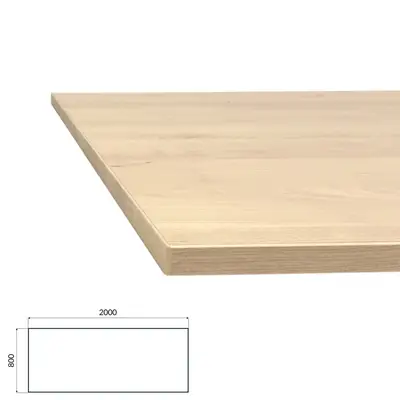 Björkskiva, lätt att matcha med möbler i ljus lönn och bok. Gjord för skrivbords ändamål med robust och lättstädad laminat. Kompletteras med ben, stativ eller elstativ.