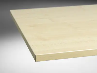 Björkskiva, lätt att matcha med möbler i ljus lönn och bok. Gjord för skrivbordsändamål med robust och lättstädad laminat. Kompletteras med ben, stativ eller elstativ.