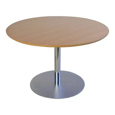 Rund bordsskiva (ny) i bok med fasade kanter. OBS, pelarstativet på bilden ingår ej.