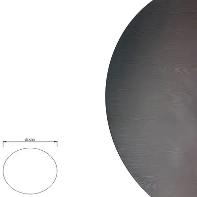 Rund bordsskiva i svart med träådring, 60cm i diameter. Lämplig som café- eller soffbord. Kompletteras med passande underrede. EGGER U998ST38.
