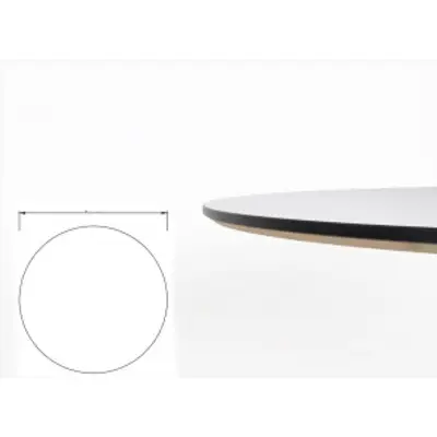 Rund fasad vit bordsskiva med svart kant passar som café- eller soffbord. Kompletteras med passande underrede.