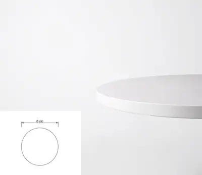 Rund vit bordsskiva passar som café- eller soffbord. Kompletteras med passande underrede.