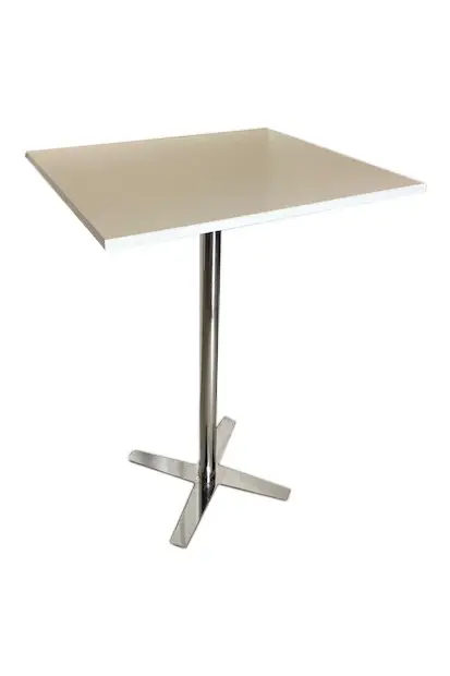 Cafébord från Balzar Beskow. Vit skiva och kromat stativ.