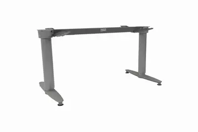 Höj och sänkbart EL-skrivbord från kvalitetssäkra Kinnarps i grå färg. Balken till skrivbordet kan kapas, vilket gör att skivor från 120cm-200cm passar till stativet. Det finns även olika storlekar på stativets fötter, beroende på vilket djup skrivbordsskivan har.