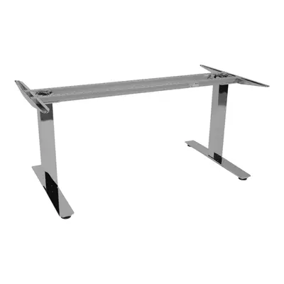 Snyggt höj/sänkbart elskrivbord från Kinnarps i krom med fyrkantiga ben. Bordsskivor med mått 120-140 cm bredd och 80 cm djup passar till stativet.