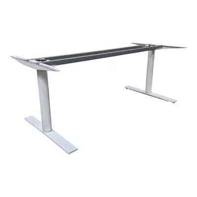 Snyggt höj/sänkbart elskrivbord från Kinnarps i vit färg med runda ben. Bordsskivor med mått 160-180 cm bredd och 70-80 cm djup passar till stativet.