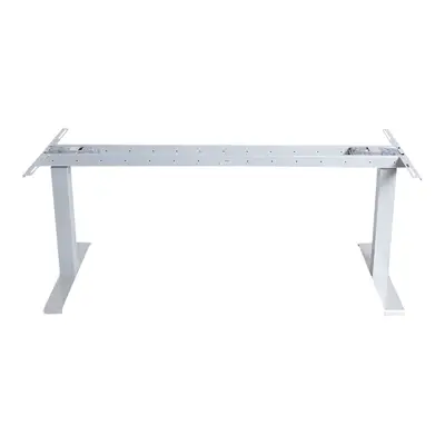 Snyggt höj/sänkbart EL-skrivbord från Kinnarps i grå färg med fyrkantiga ben. Bordsskivor med mått 180 cm bredd och 80 cm djup passar till stativet. Arbetshöjd 61-126 cm.