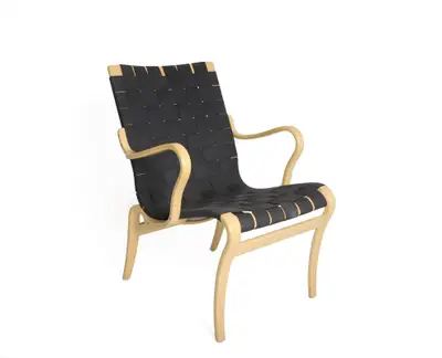 Fåtöljen Mina är en klassisk fåtölj med skön sittkomfort. Designad av Bruno Mathsson. Fåtöljen är helt av böjlimmad bok och ytbehandlad med klarlack. Sitsen är flätad med sadelgjord av polyester. Sitthöjd: 34cm.