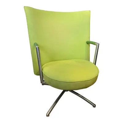 Den snurrbara fåtöljen Partner 70R från välkända Erik Jørgensen. Helklädd i ett grönt tyg med underrede i krom. Design av Johannes Foersom & Peter Hjort-Lorentzen. Sitthöjd: 43cm.
