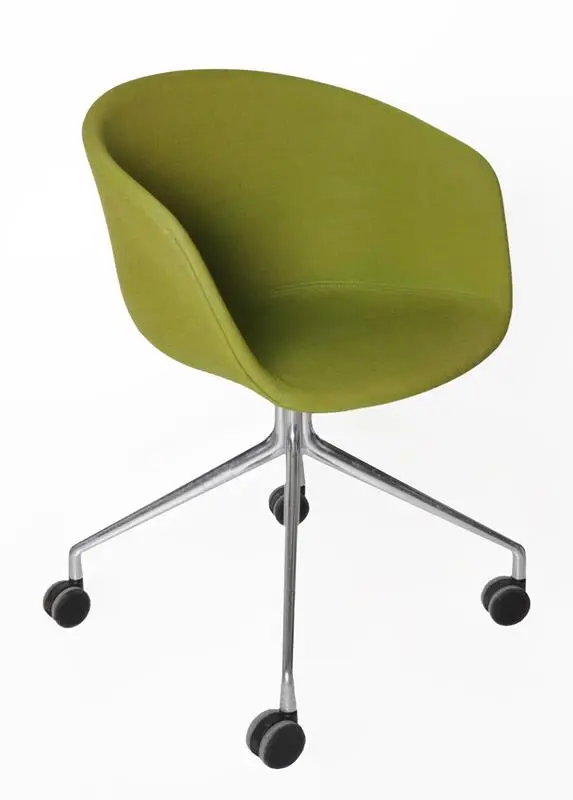 Stolen AAC21 är en karmstol med snurrfunktion, formgiven av Hee Welling för HAY. Stolen har en vacker stolskropp där ryggstöd, armstöd och sits är i ett enda stycke. Skalet är tillverkat i ett starkt polypropylen som sedan är klätt i ett snyggt grönt tyg. Underredet är i krom med snurrhjul. Sitthöjd: 46cm.