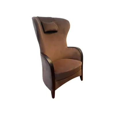 Fåtölj från Interior Collection. Bunt tyg med armstöd i bokträ. Sitthöjd: 43cm
