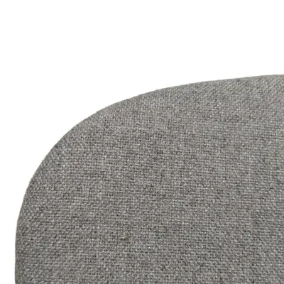 Fåtöljen Papa från Skandiform. Stolen har ett underrede och ryggstöd i ask, och en klädd sits i grått tyg. Sitthöjd: 42cm.