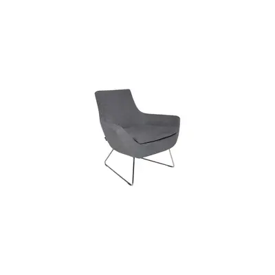 Happy är en fåtölj där formgivaren Roger Perssons lek med linjer och kurvor öppnar upp för nya formlösningar och nya funktioner. Helklädd i ett grått tyg. Sitthöjd: 44cm.