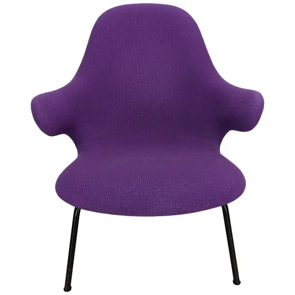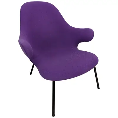Catch från &Tradition är en stol som alltid är redo att fånga upp dig i sina armar. En bekväm loungestol klädd i ett lila tyg på svarta ben. Sitthöjd: 36cm.