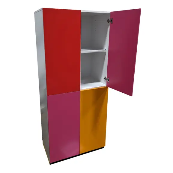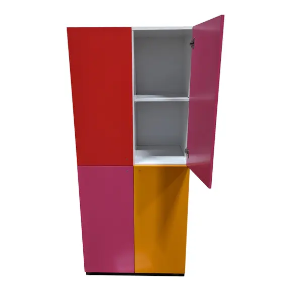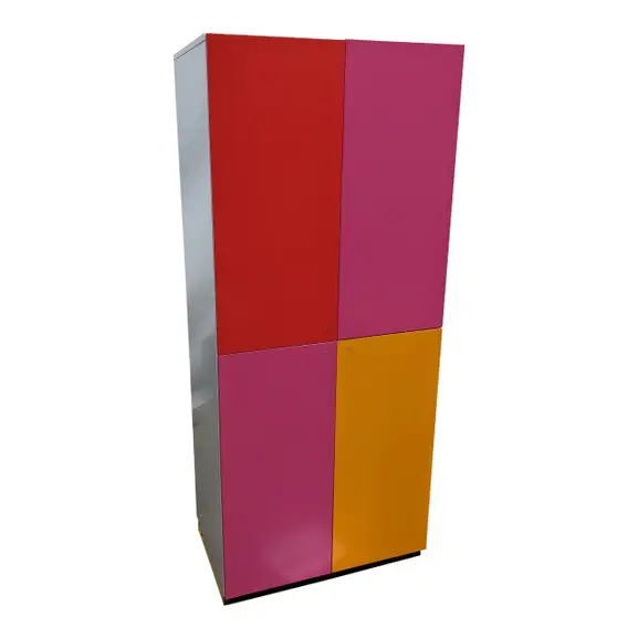 Snygg flerfärgad förvaring. Förvaringen utrustas med Flexlock Invisible, ett osynligt lås på dörrarnas insida som ger förvaringen ett rent och snyggt uttryck. Låset styrs med ett personligt kort. Personliga kort är beställningsvara, kontakta säljare för mer info och prisuppgifter.