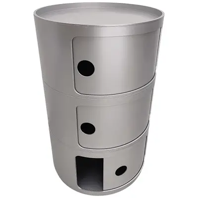 En modulförvaring som går att ta isär och bygga på efter behov och önskemål. Componibili är en av Kartells klassiker som går att se både på MoMA i New York och Centre George Pompidou i Paris. Denna variant på hjul består av 3 lägre moduler samt ett lock. I matt silver.