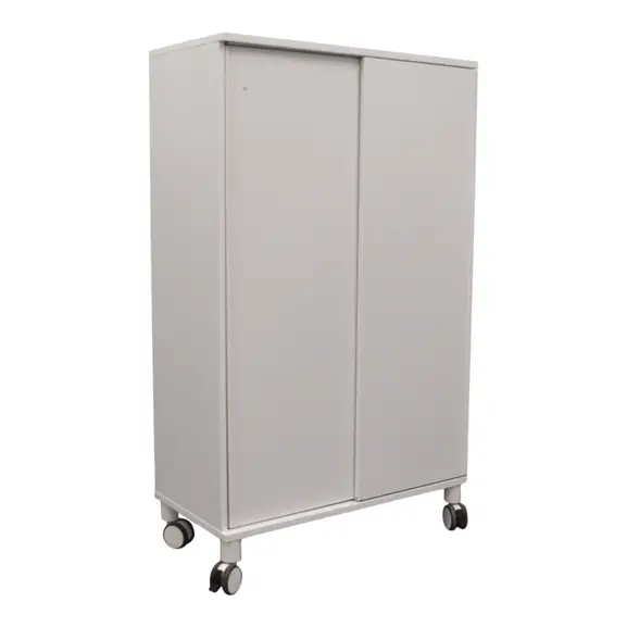 Snygg vit skjutdörrsförvaring från Kinnarps. Förvaringen är utrustad med Flexlock Invisible, ett osynligt lås på dörrarnas insida som ger förvaringen ett rent och snyggt uttryck. Låset styrs med ett personligt kort. Personliga kort är beställningsvara, kontakta säljare för mer info och prisuppgifter.