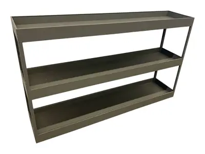 Hylla ”New Order Tray Shelf” från HAY i en grå kulör. Design Stefan Diez.