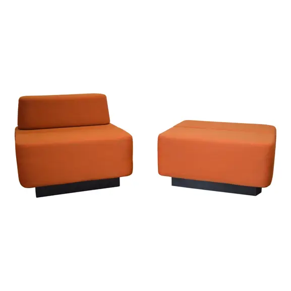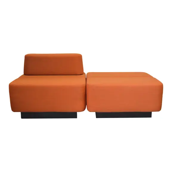 Soffa från Martela i serien Movie, sitthöjd 40cm. Soffan består av två delar, den kan därför användas och paras ihop som man själv vill och önskar.