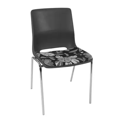 RBM Ana är en populär stol som fyller samlingssalar, matsalar, mötesrum och cafeterior. Med en enkel och ergonomisk design är Ana stolen lätt att placera i rader och och flytta runt. Sätet är klätt i svart tyg med vitt blommönster, stolen är stapelbar.