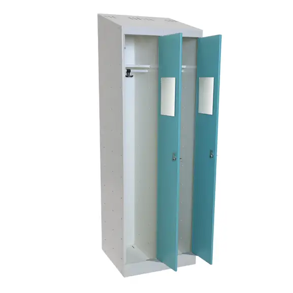 Klädskåp från ITP Design Bodskåp 2-dörrar. Inredning i skåp – hatthylla samt klädstång med två ankarkrokar och spegel.