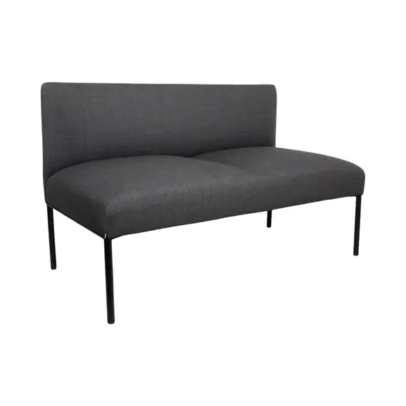 Soffan i Noora-serien är modulär och kompakt. Med de olika varianterna skapas många kombinationer. Soffans stilfulla och enkla uttryck passar perfekt i lobby- och mötesutrymmen. Helklädd i ett mörkgrått tyg med svarta metallben som underrede. Sitthöjd: 45cm.