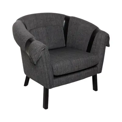RAM fåtölj av Fredik Färg och Marga Blanche för Design House Stockholm. Fåtöljen RAM är en klassisk skön fåtölj med bra stöd för armarna. Med lite mer avskalad design och med detaljer i svart läder och ben i svart känns RAM fåtöljen skräddad. Visst slitage på lädret kan förekomma. Sitthöjd: 42cm.
