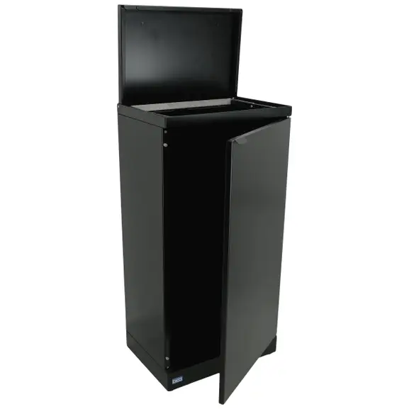 Källsortering från Carbi i serien BICA i elegant och funktionell design. Behållaren har ett fyrkantigt inlopp och rymmer 95 liter. Med lock och integrerad påshållare. Ytterdörr med softclose för enkel tömning. Svart pulverlack.