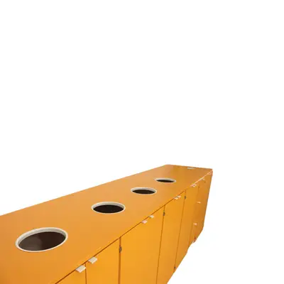 Källsorteringskärl i orange kulör.