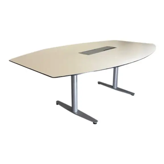 Konferensbord från Edsbyn med vit skiva, silvriga ben och silvrig kabellucka.