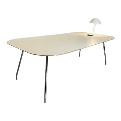 Cornflake konferensbord, formgiven av trion Claesson Koivisto Rune. Ett smidigt bord med nätt intryck. Utrustat med kabellucka med 230V uttag och belysning från Wästbergs ”Sempé”, designad av Inga Sempé. Lampan fungerar och fint skick men skärmen sitter något löst. Både lampa och uttagsbrunn går att ersätta med andra alternativ.