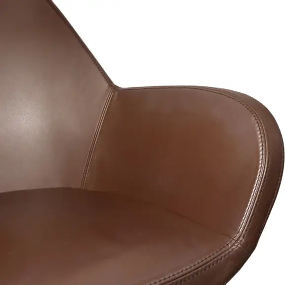 Konferensstolen Fan 10HC från Profim/Edsbyn. Prisvärd stol som passar utmärkt som konferensstol, mötesstol eller besöksstol. Stolen har armstöd och är helklädd i slitstarkt läder från Elmo Soft, nr:93129, Dark Chocolate. Stolen står på ett 4-bens stativ i krom. Sitthöjd: 44cm.