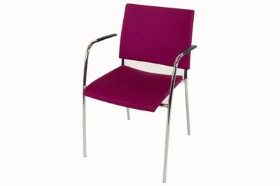 Den snygga och bekväma stolen Spira från Lammhults, helklädd i rosa tyg och med kromat underrede. Stolen är stapelbar. Sitthöjd: 45cm.