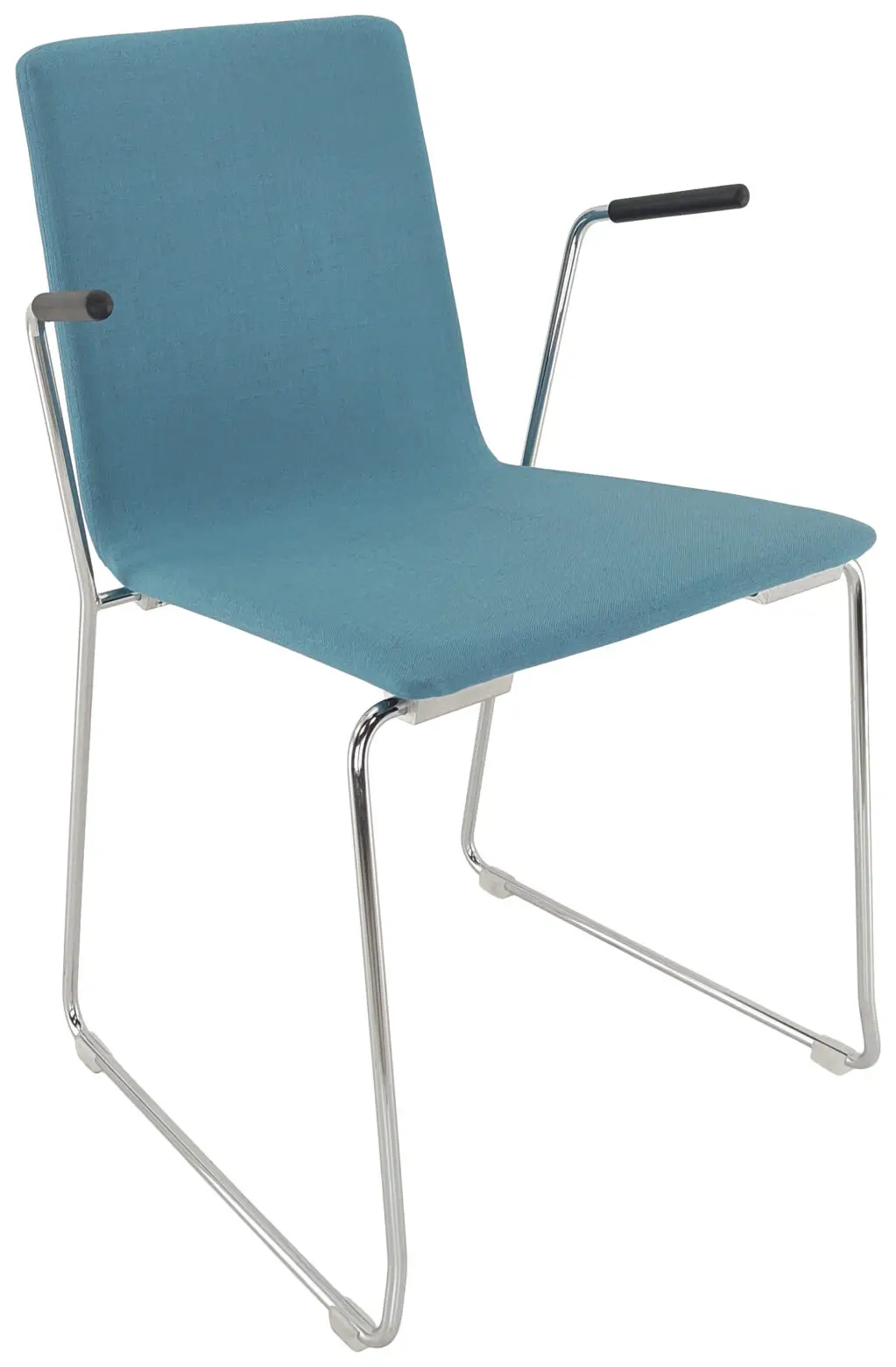 Stapelbar karmstol med medar från Skandiform i en klar blå färg. Sitthöjd 47cm.