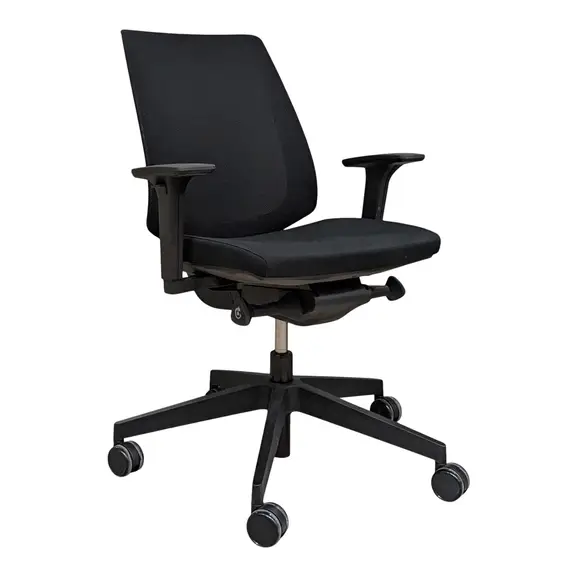 Arbetsstolen Light Up från Profim har justerbara armstöd, sittdjupsjustering och en gungmekanism som justeras enligt användarens vikt.