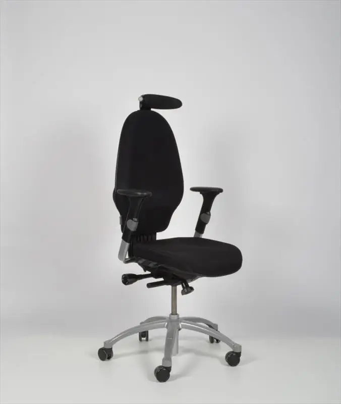 Den ergonomiska kontorsstolen RH Extend 120 kommer med en knäledsgunga med justerbart motstånd, som går att låsa i valfri position. Knäledsgungan gör att ryggstödet och sitsen rör sig lika mycket när du lutar dig bakåt, ungefär som en gungstol. Genom att använda gungan frekvent under arbetsdagen stimulerar du blodcirkulationen och minskar risken för smärta och tyngdkänsla i ben och fötter. RH Extend 120 är utrustad med högt ryggstöd som går att höja och sänka, vilket gör att du kan justera ryggstödet för att passa din rygg så att du sitter med rätt stöd hela dagen. Sitsen har en bekväm, rundad vattenfallskant som minskar trycket mot dina lår, och som går att justera 8 centimeter i djup. Detta gör att du alltid sitter optimalt i kontorsstolen oavsett hur lång du är, samtidigt som en god blodcirkulation ned till benen bibehålls. Armstöd och fotkrysset kan variera.