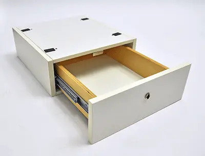 Smidig liten förvaringslåda avsedd för montage under skrivbordsskivan.