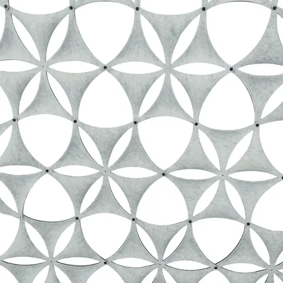 Airflake Blade Open från Abstracta är gjord i formpressad filt som klätts med tyg för att absorbera ljud och hindra ekon från att uppstå. De hexagonformade modulerna, som för tankarna till snöflingor, är gjorda för att kombineras till ”öppna” skärmar, som bildar eller antyder nya rum i rummet samtidigt som de låter ljuset passera obehindrat genom dem. Modulerna monteras ihop med hjälp av parkopplingar. Produkten hängs från taket eller mot vägg via tillbehöret upphängningsskena.