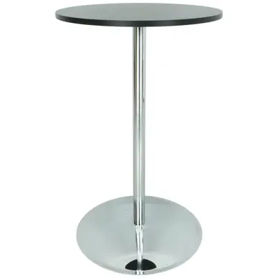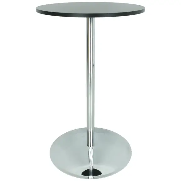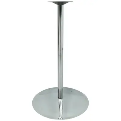 Pelarstativ i krom, höjd 110cm. Botten mäter Ø65cm och plattan upptill Ø24cm. Passar bordsskiva ca Ø70-80cm. Visas här med bordsskiva Ø70cm.