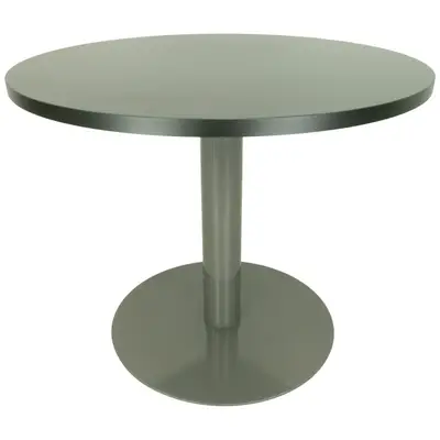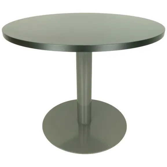 Pelarstativ i mörkgrå lack, 54cm hög. Botten är 50cm i diameter och plattan upptill mäter 25x25cm. Passar bordsskiva ca Ø60-80cm. Visas här med bordsskiva Ø70cm.