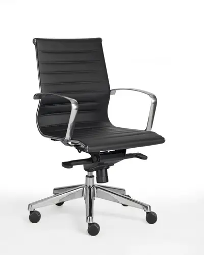 En konferens- och arbetsstol från Toplux med medelhögt ryggstöd på hög nivå.